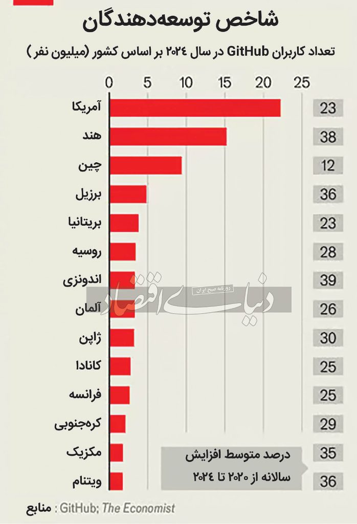 سهم رو به رشد مهندسان جهان از بازارهای نوظهور میآیند. هیچ تعریف استاندارد و مشخصی از یک توسعهدهنده وجود ندارد، اما در حدود سال ۲۰۲۰ تعداد کاربران پلتفرم محبوب ذخیره و اشتراکگذاری کد Github که در کشورهای فقیرتر زندگی میکنند، از کشورهای ثروتمند پیشی گرفت. در همین راستا، انتظار میرود که در چند سال آینده هند با پشت سر گذاشتن آمریکا به بزرگترین استخر استعدادهای برنامهنویسی جهان تبدیل شود.